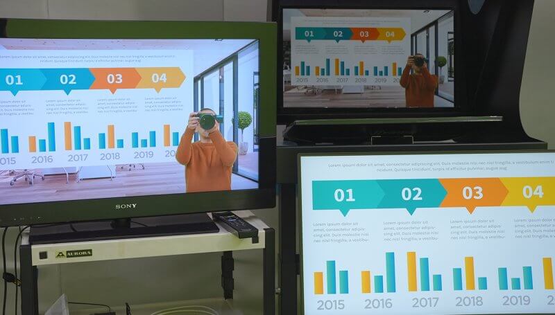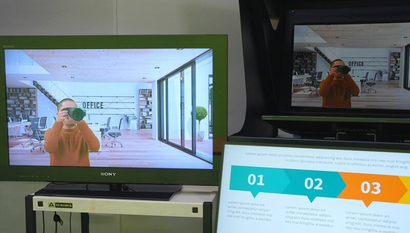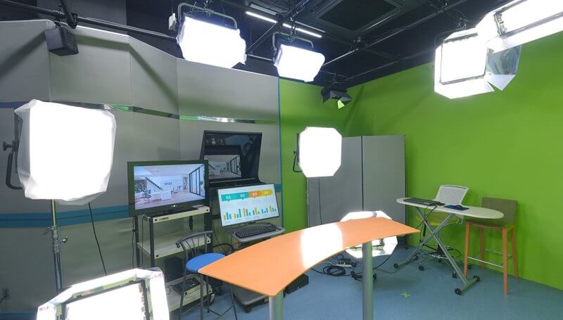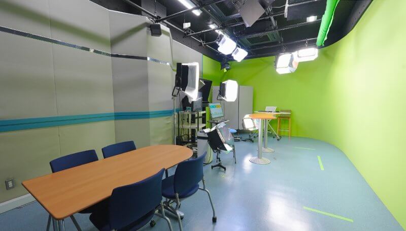 広いスペースで、クロマキー合成もお手の物!eラーニングの撮影から企業紹介まで、アイデア次第で何でもできちゃいます。